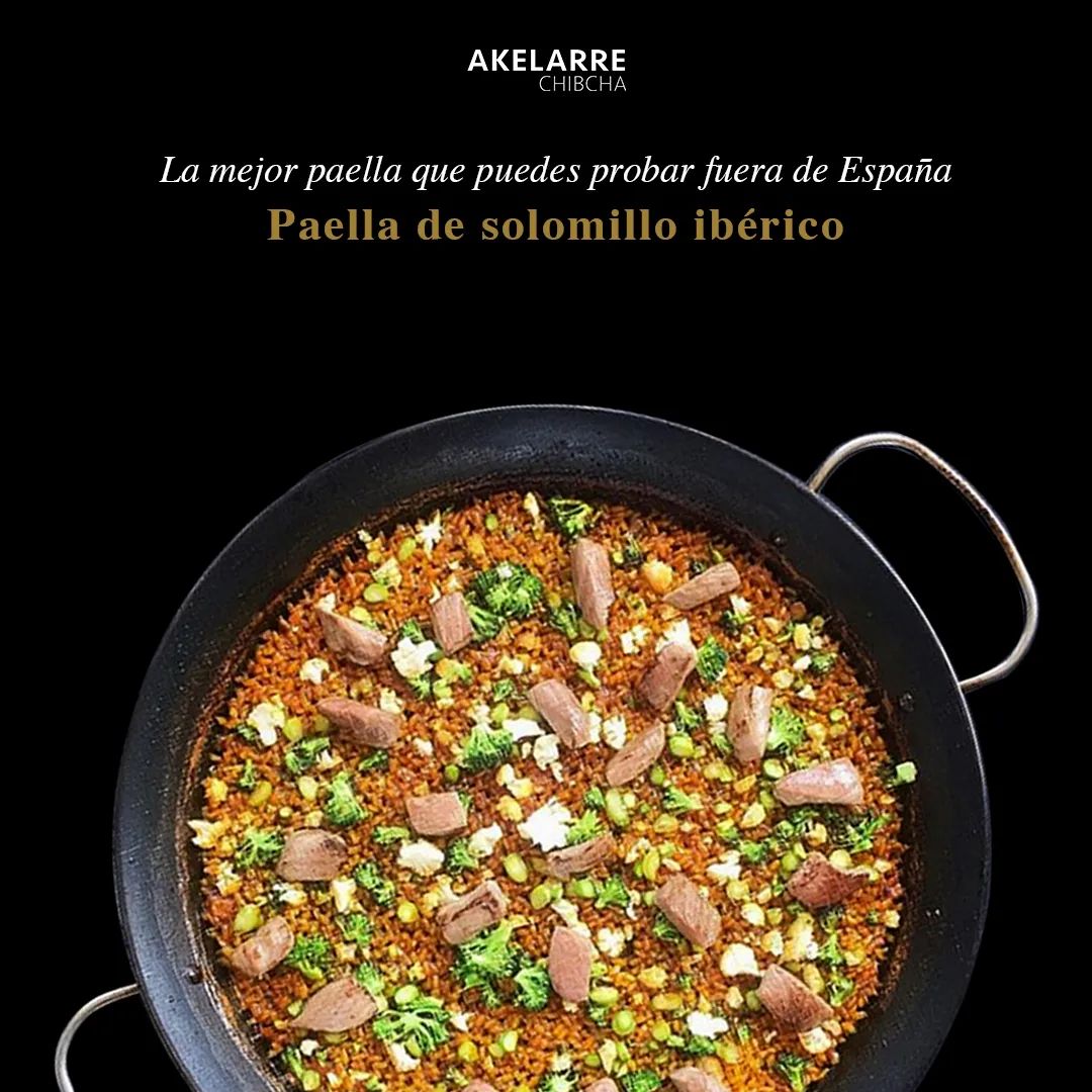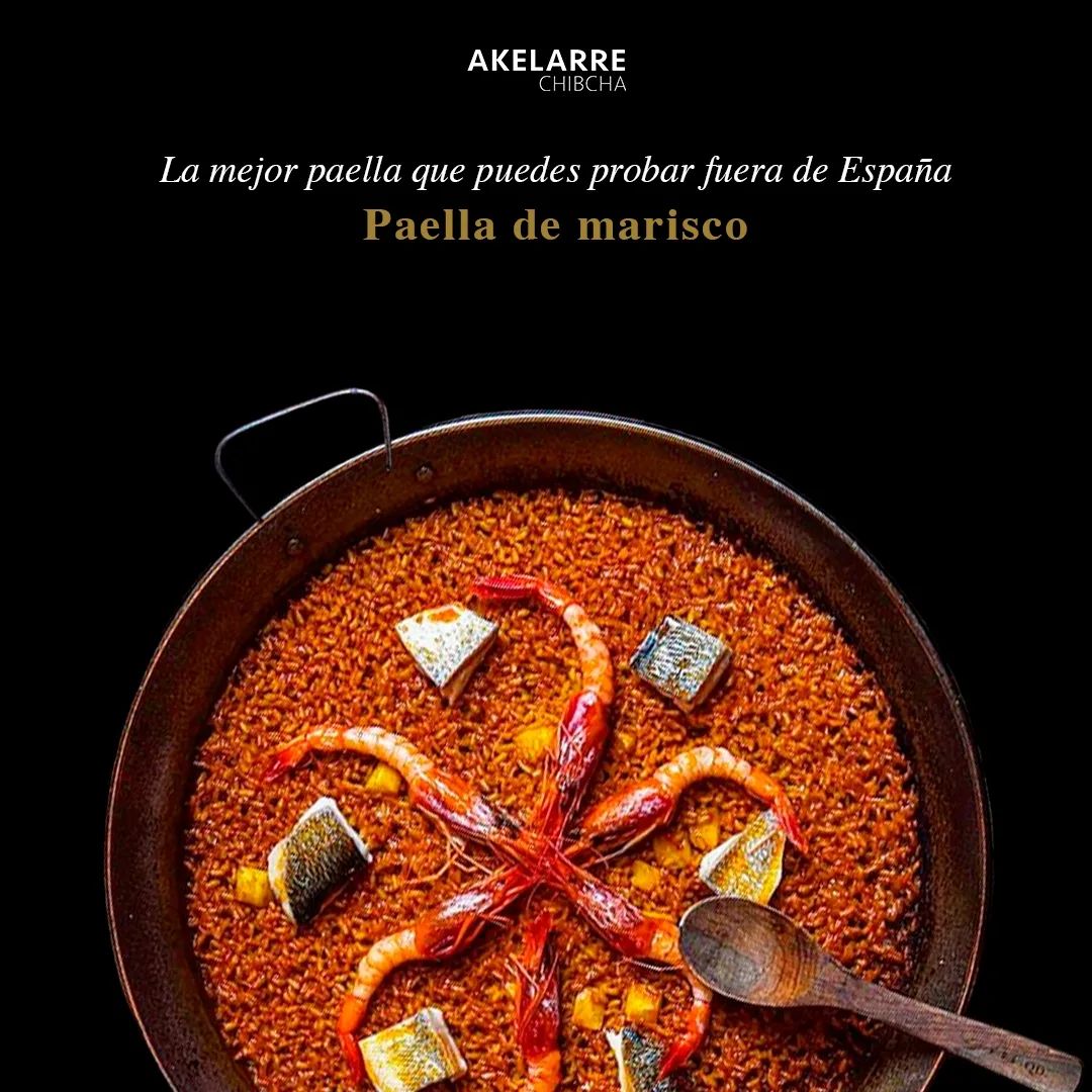 El socarrat — el fondo dorado y crujiente del arroz — solo se forma con fuego de leña. El gas no lo consigue. La vitrocerámica tampoco. Es la firma de una paella cocinada como se debe, y en Akelarre Chibcha es innegociable.