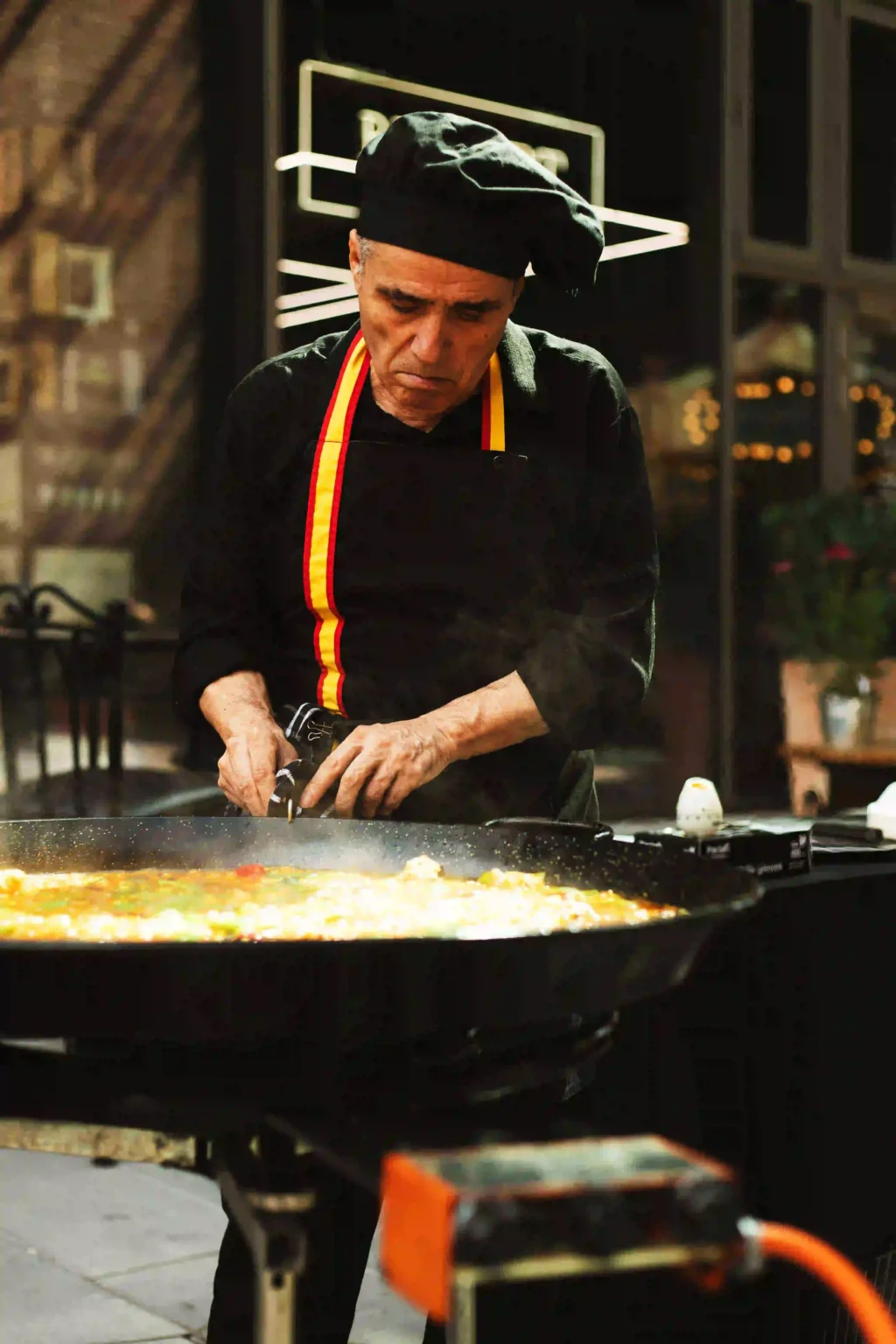 El colorante alimentario cuesta centavos. El azafrán auténtico cuesta mucho más. Nosotros usamos azafrán real por eso el color de nuestra paella es diferente, el aroma es diferente y el sabor es diferente. No hay atajos en esto.